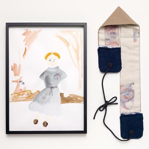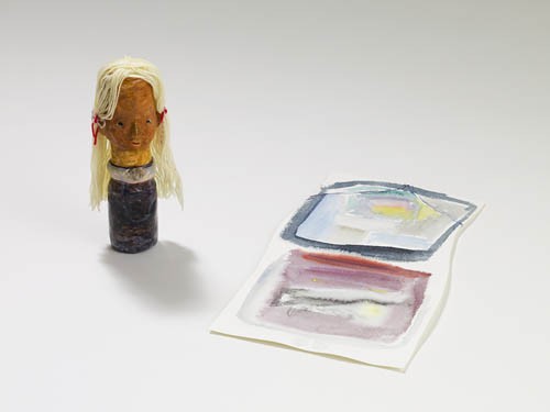 Watercolor on paper with doll