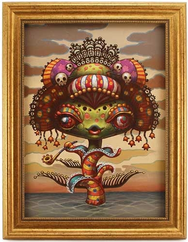 With a style that combines traditional Japanese anime with a distinctly western pop surrealist aesthetic, Yoko d Holbachies psychedelia-inspired oil paintings entice the viewer into an alternative visual universe, characterised by its vivid colours and intriguing inhabitants.