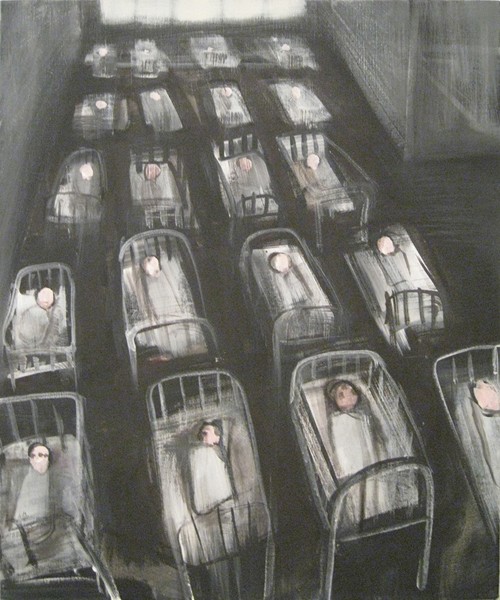 Japanese ink, water-thinned paint and acrylic on canvas mounted on panel