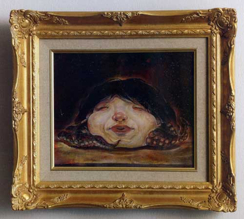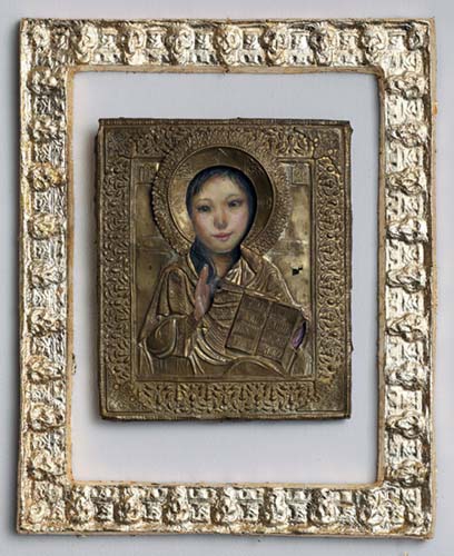 Oil on canvas, fragment of an icon found in a flea market in Russia, paper-mache frame